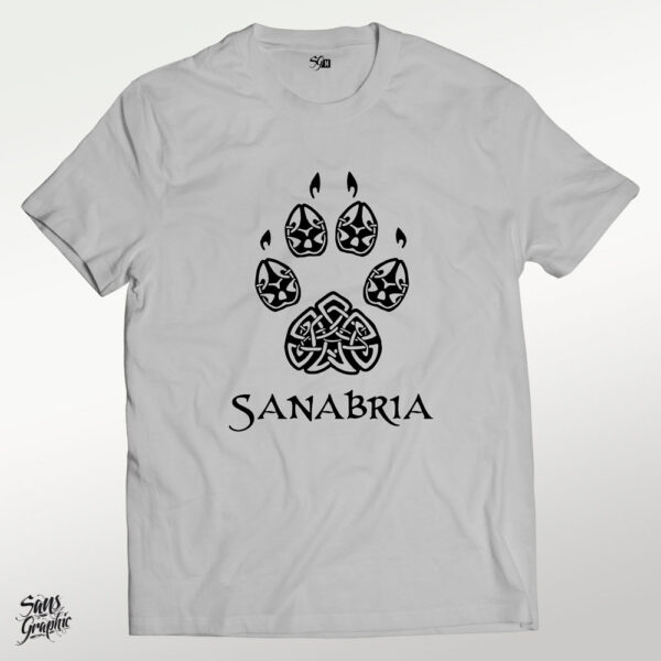 Camiseta de manga corta unisex con ilustración de una huella de lobo ibérico con motivo celta junto a la inscripción Sanabria.