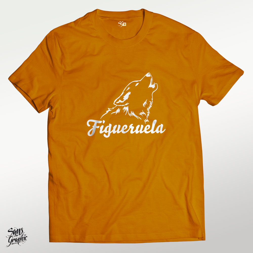 Camiseta de manga corta unisex con ilustración de la cabeza de un lobo ibérico junto a la inscripción del nombre de tu pueblo, o del que quieras.