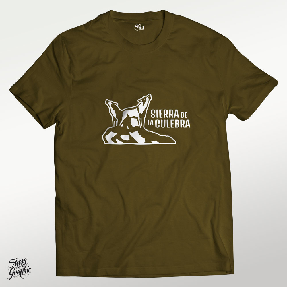 Camiseta de manga corta unisex con ilustración de lobos ibéricos aullando junto a la inscripción Sierra de la Culebra.