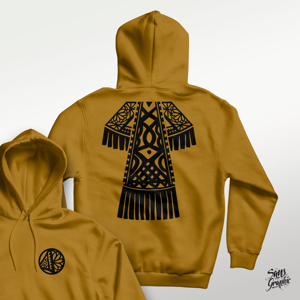 Sudadera capucha unisex con ilustraciones representativas de la tradicional capa alistana, también llamada capa parda, en la parte delantera incluye pequeño detalle.