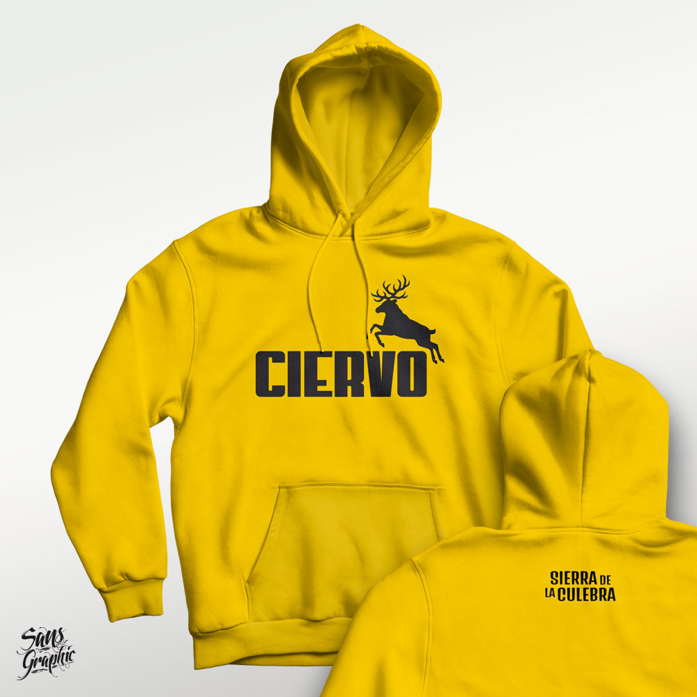 Sudadera capucha unisex con una versión del conocido logotipo de Puma adaptado a uno de los animales más emblemáticos de la Sierra de la Culebra, el ciervo. Incluye la inscripción en la parte trasera.
