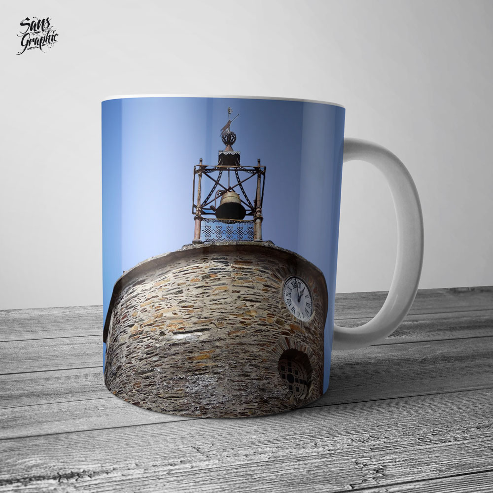 Taza de cerámica de 350ml con fotografía de la Torre del Reloj de Alcañices